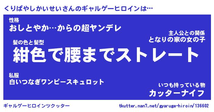 | 男性向けラノベタイトル風あだ名 | 『クリバヤシカイセイアートオンライン』 |