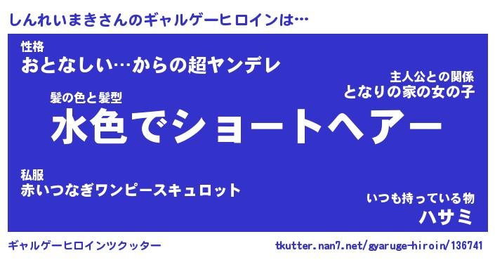 | 男性向けラノベタイトル風あだ名 | 『しんれいまきの憂鬱』 |