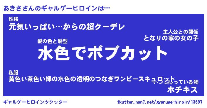 | 男性向けラノベタイトル風あだ名 | 『あきさの憂鬱』 |