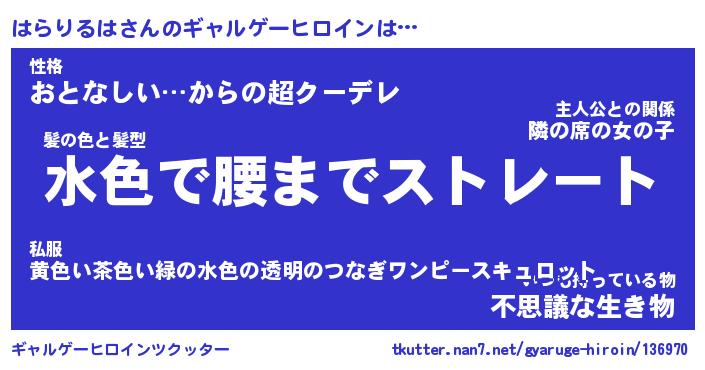 | 男性向けラノベタイトル風あだ名 | 『はらりるはの憂鬱』 |