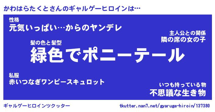 | 伝説のあだ名 | 『封印されし竜騎士かわはらたくと』 |