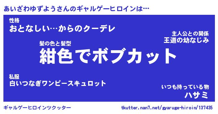 | 女子向けラノベタイトル風あだ名 | 『誰かこのあいざわゆずようを説明してください! ~契約から始まるウェディング~』 |