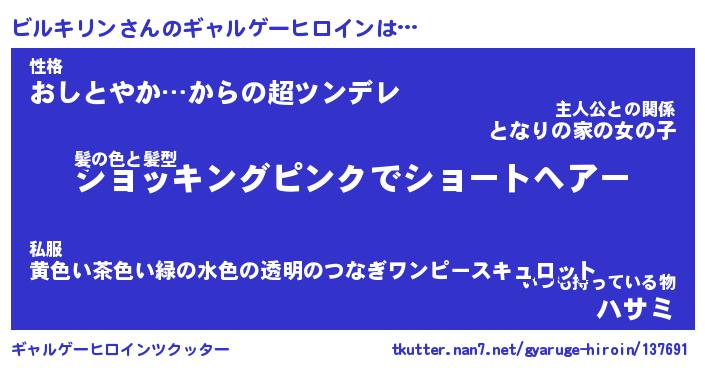| ファンタジー風あだ名 | 『ビルフェル』『エターナルビルキリンー』 |