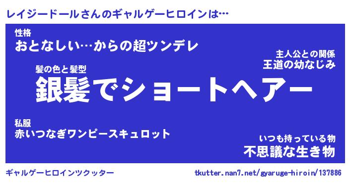 | 恥ずかしいあだ名 | 『プリティーレイジードール』『レイちん』 |