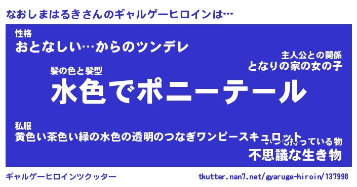 | 男性向けラノベタイトル風あだ名 | 『なおしまはるきの憂鬱』 |