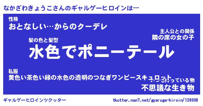 | 伝説のあだ名 | 『伝説の竜騎士なかざわきょうこ』 |