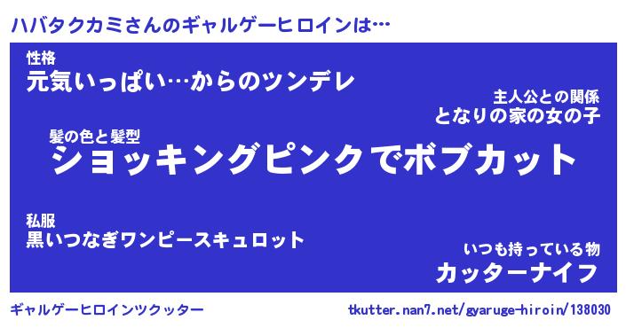 | ヒーロー風カッコイイあだ名 | 『スーパーハバタクカミ』『暗黒騎士ハバ』 |
