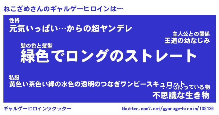 | ファンタジー風あだ名 | 『ネコフェル』『エターナルネコザメー』 |