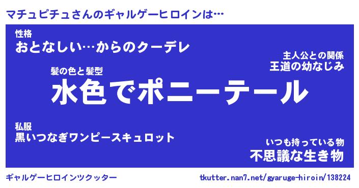 | 女子向けラノベタイトル風あだ名 | 『(仮)マチュピチュのやんごとなき事情』 |