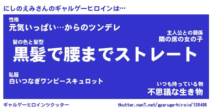| ポケモン風あだ名 | 『ニシチュウ』『ニシノダネ』 |