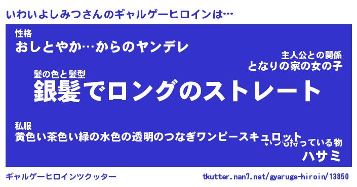 | 女子向けラノベタイトル風あだ名 | 『いわいよしみつ姫と円卓の騎士』 |