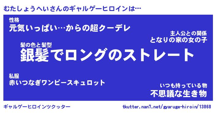 | 男性向けラノベタイトル風あだ名 | 『むたしょうへいの憂鬱』 |