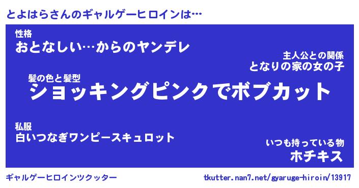 | 女子向けラノベタイトル風あだ名 | 『(仮)とよはらのやんごとなき事情』 |