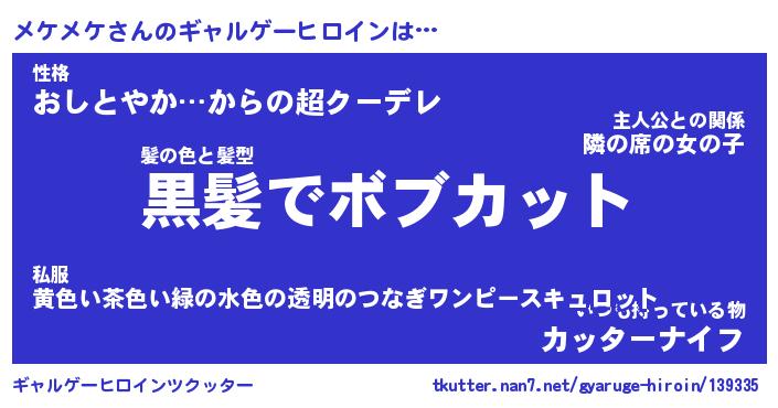 | ファンタジー風あだ名 | 『メケフェル』『エターナルメケメケー』 |