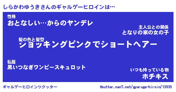 | 女子向けラノベタイトル風あだ名 | 『(仮)しらかわゆうきのやんごとなき事情』 |