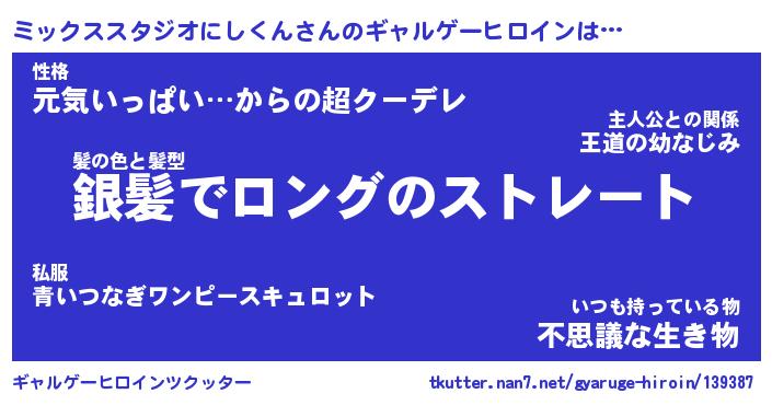 | 男性向けラノベタイトル風あだ名 | 『ミックススタジオにしくんの憂鬱』 |