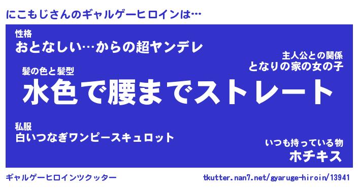 | 女子向けラノベタイトル風あだ名 | 『(仮)にこもじのやんごとなき事情』 |