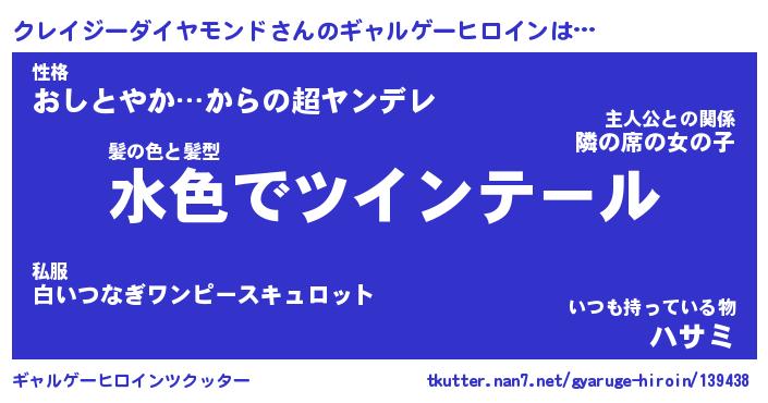 | 男性向けラノベタイトル風あだ名 | 『クレイジーダイヤモンドの憂鬱』 |