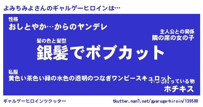 | 男性向けラノベタイトル風あだ名 | 『よみちみよの憂鬱』 |
