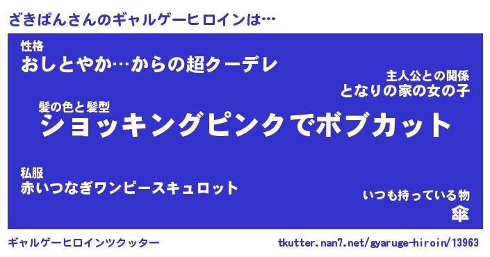 | 男性向けラノベタイトル風あだ名 | 『ざきぱんの憂鬱』 |