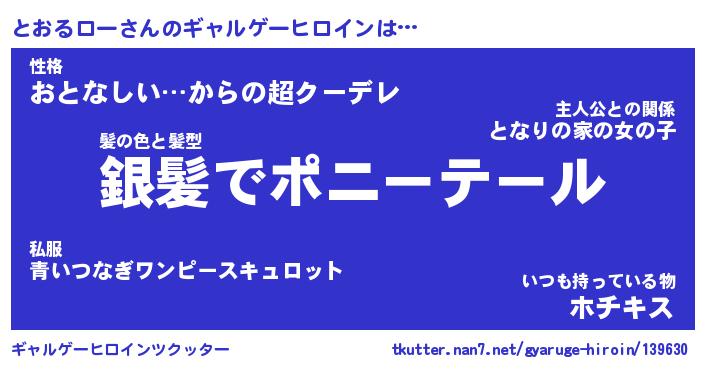 | ファンタジー風あだ名 | 『トオフェル』『エターナルトオルローー』 |