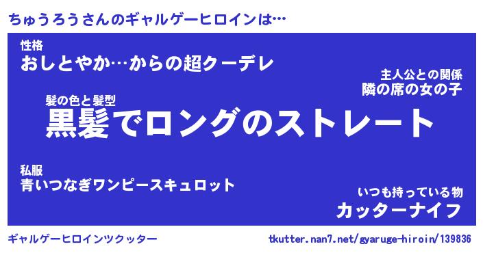 | ファンタジー風あだ名 | 『チュフェル』『エターナルチュウロウー』 |