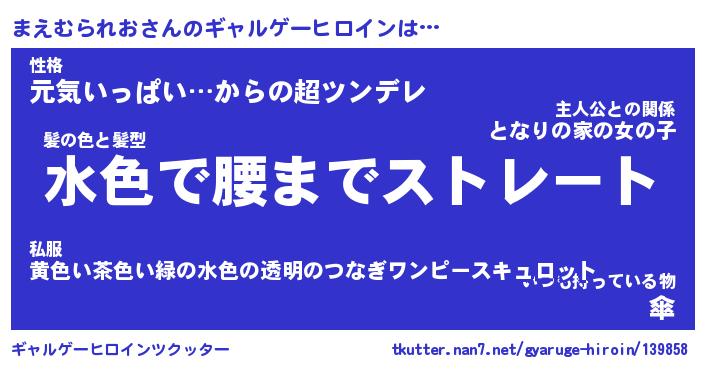 | 男性向けラノベタイトル風あだ名 | 『まえむられおの憂鬱』 |