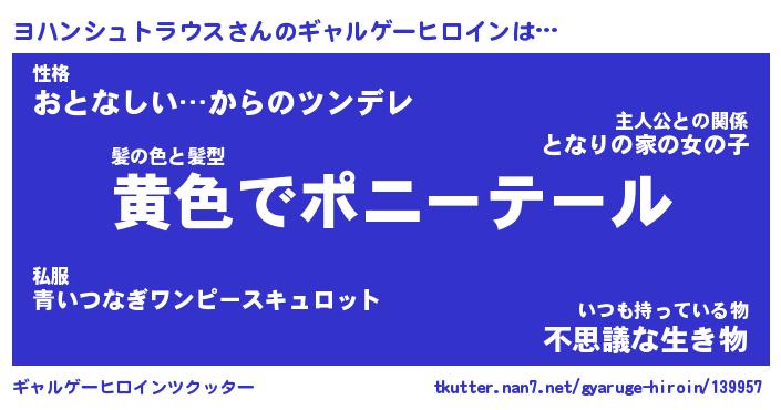 | 女子向けラノベタイトル風あだ名 | 『誰かこのヨハンシュトラウスを説明してください! ~契約から始まるウェディング~』 |
