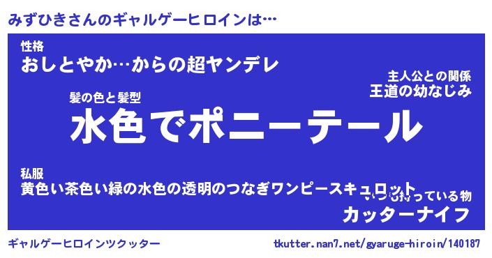 | ファンタジー風あだ名 | 『ミズフェル』『エターナルミズヒキー』 |