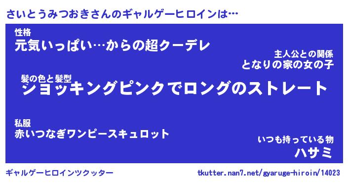 | 男性向けラノベタイトル風あだ名 | 『さいとうみつおきの憂鬱』 |