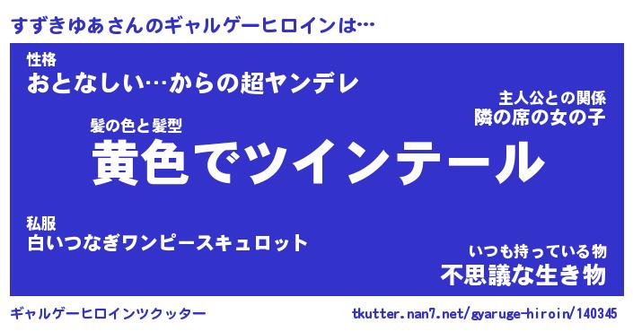 | ヒーロー風カッコイイあだ名 | 『スーパースズキユア』『天弓騎士スズ』 |