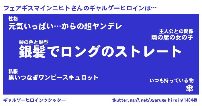 | ヘコむあだ名 | 『フェにゅー』『豆乳』『フェぷりん』 |