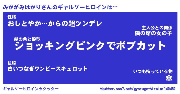 | 男性向けラノベタイトル風あだ名 | 『みかがみはかりの憂鬱』 |