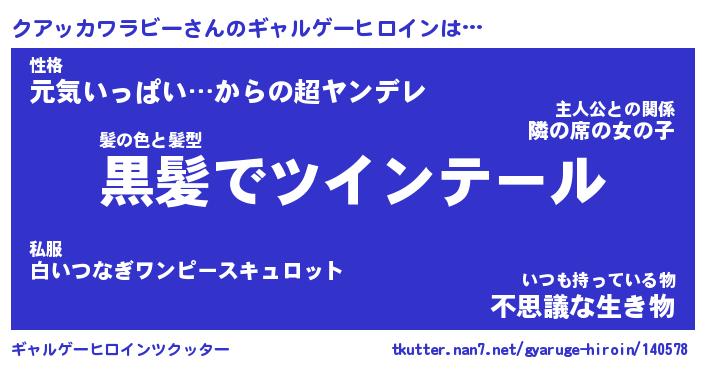 | 男性向けラノベタイトル風あだ名 | 『クアッカワラビーの憂鬱』 |