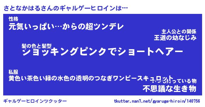| 女子向けラノベタイトル風あだ名 | 『(仮)さとなかはるのやんごとなき事情』 |