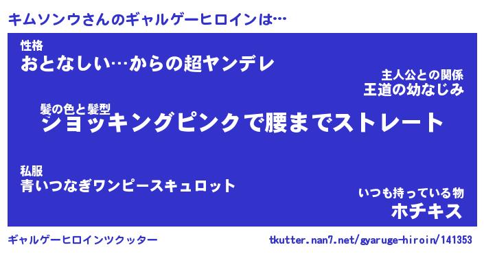 | 女子向けラノベタイトル風あだ名 | 『(仮)キムソンウのやんごとなき事情』 |