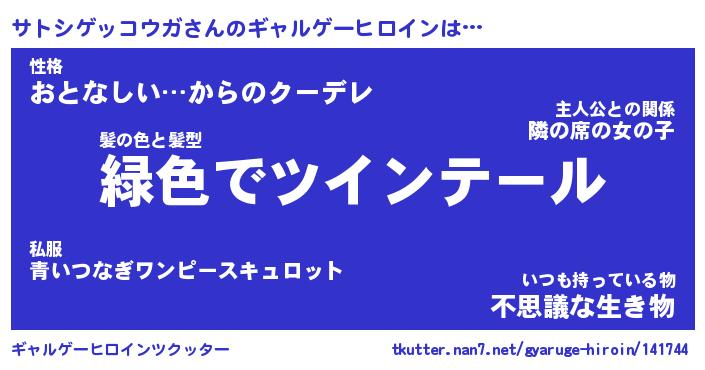 | 欧米人風あだ名 | 『マイケルサトシゲッコウガ』 |