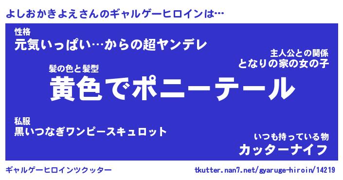 | 伝説のあだ名 | 『封印されし竜騎士よしおかきよえ』 |