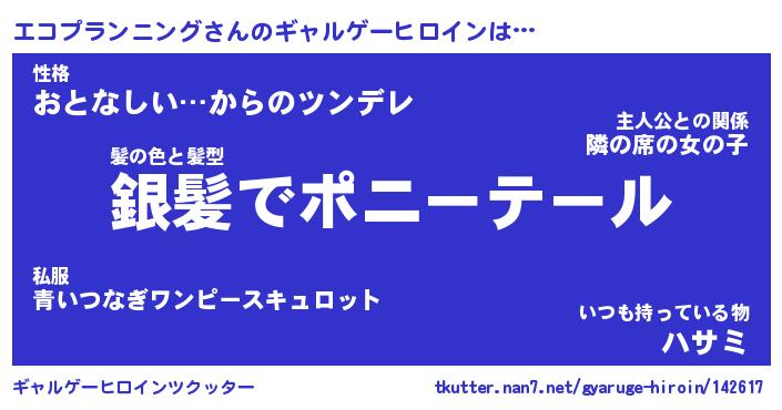 | 女子向けラノベタイトル風あだ名 | 『エコプランニング姫と円卓の騎士』 |