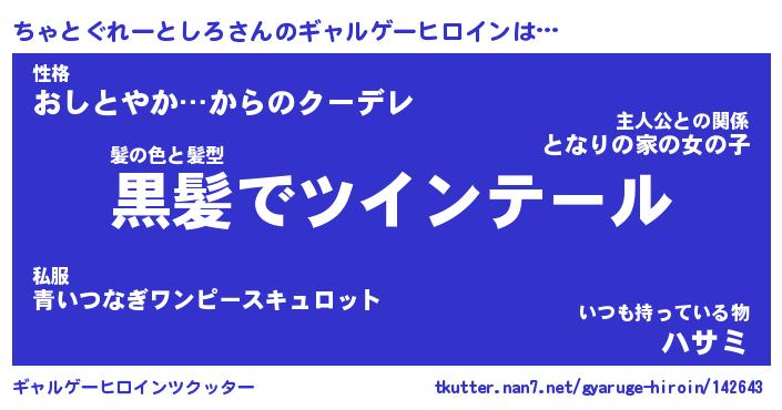 | 女子向けラノベタイトル風あだ名 | 『ちゃとぐれーとしろ姫と円卓の騎士』 |