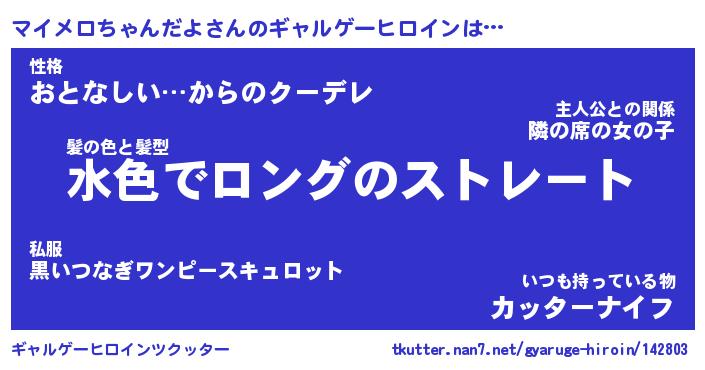 | 女子向けラノベタイトル風あだ名 | 『(仮)マイメロちゃんだよのやんごとなき事情』 |