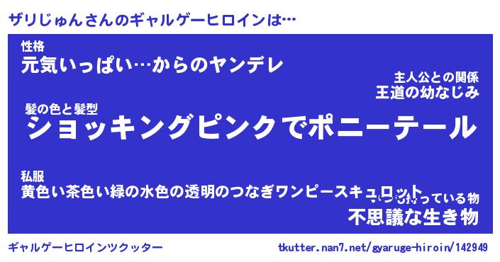 | 男性向けラノベタイトル風あだ名 | 『ザリじゅんの憂鬱』 |