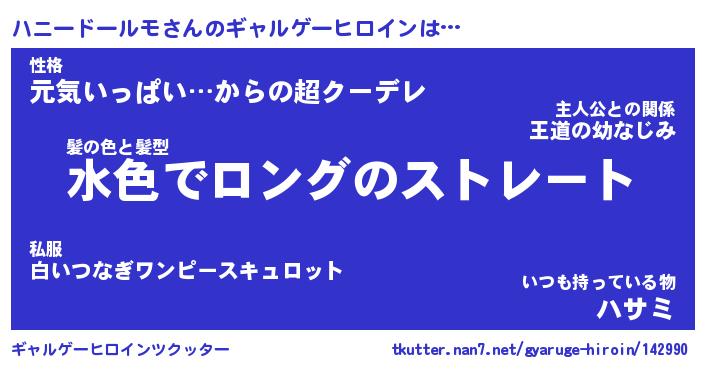 | 男性向けラノベタイトル風あだ名 | 『ハニードールモの憂鬱』 |