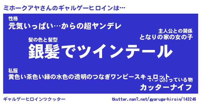 | ヘコむあだ名 | 『ミホにゅー』『酢こんぶ』『ミホを』 |