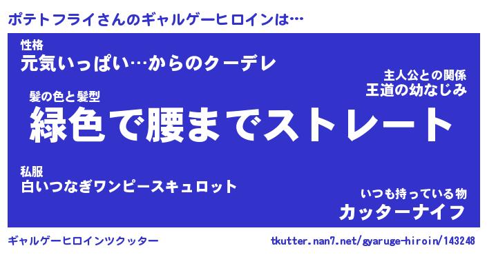 | 男性向けラノベタイトル風あだ名 | 『ポテトフライアートオンライン』 |