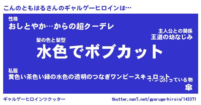 | 女子向けラノベタイトル風あだ名 | 『(仮)こんのともはるのやんごとなき事情』 |