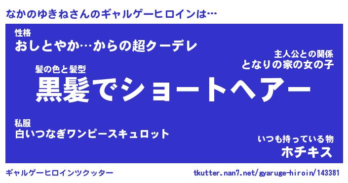 | 女子向けラノベタイトル風あだ名 | 『(仮)なかのゆきねのやんごとなき事情』 |