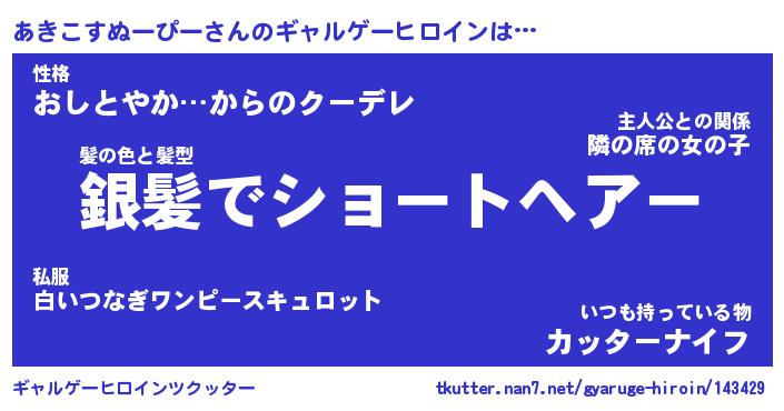 | 伝説のあだ名 | 『不死鳥の竜騎士あきこすぬーぴー』 |