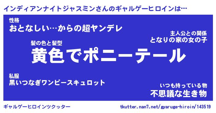 | ヒーロー風カッコイイあだ名 | 『スーパーインディアンナイトジャスミン』 |