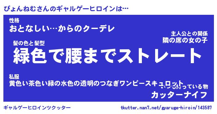 | ポケモン風あだ名 | 『ピョチュウ』『ピョンダネ』 |